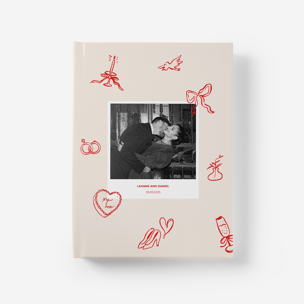 A capa rígida em cartão duro oferece proteção adicional e um acabamento elegante ao teu álbum.
